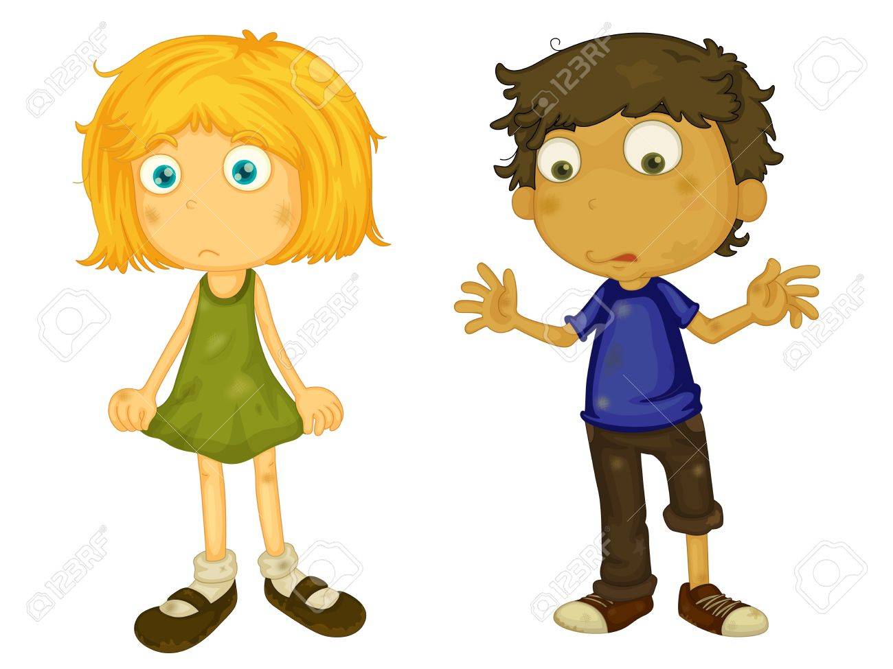 汚れた男の子と女の子のイラストのイラスト素材 ベクタ Image
